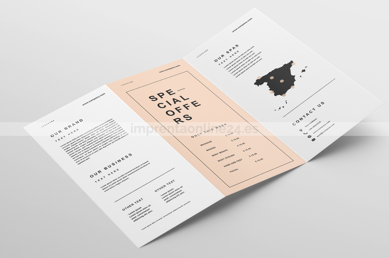 Los fantásticos trípticos en A4 impresos son una manera ideal para publicitar productos, servicios o empresas. También, valen perfectamente para mejorar la imagen de marca de cualquier negocio.